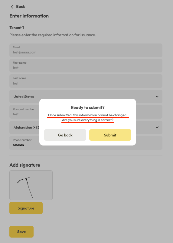 Please note that any consequences resulting from incorrect entries or missing information are solely the responsibility of the tenant, and the platform bears no liability.