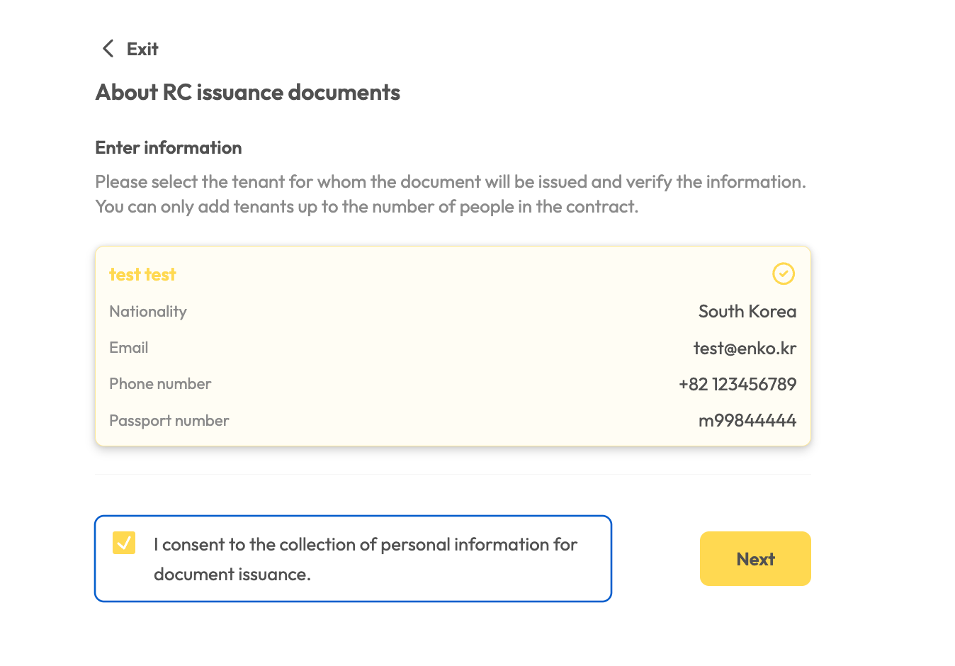 - If the number of tenants listed in your contract differs from the actual number of residents who need documents, please email us at stay_support@enko.kr.