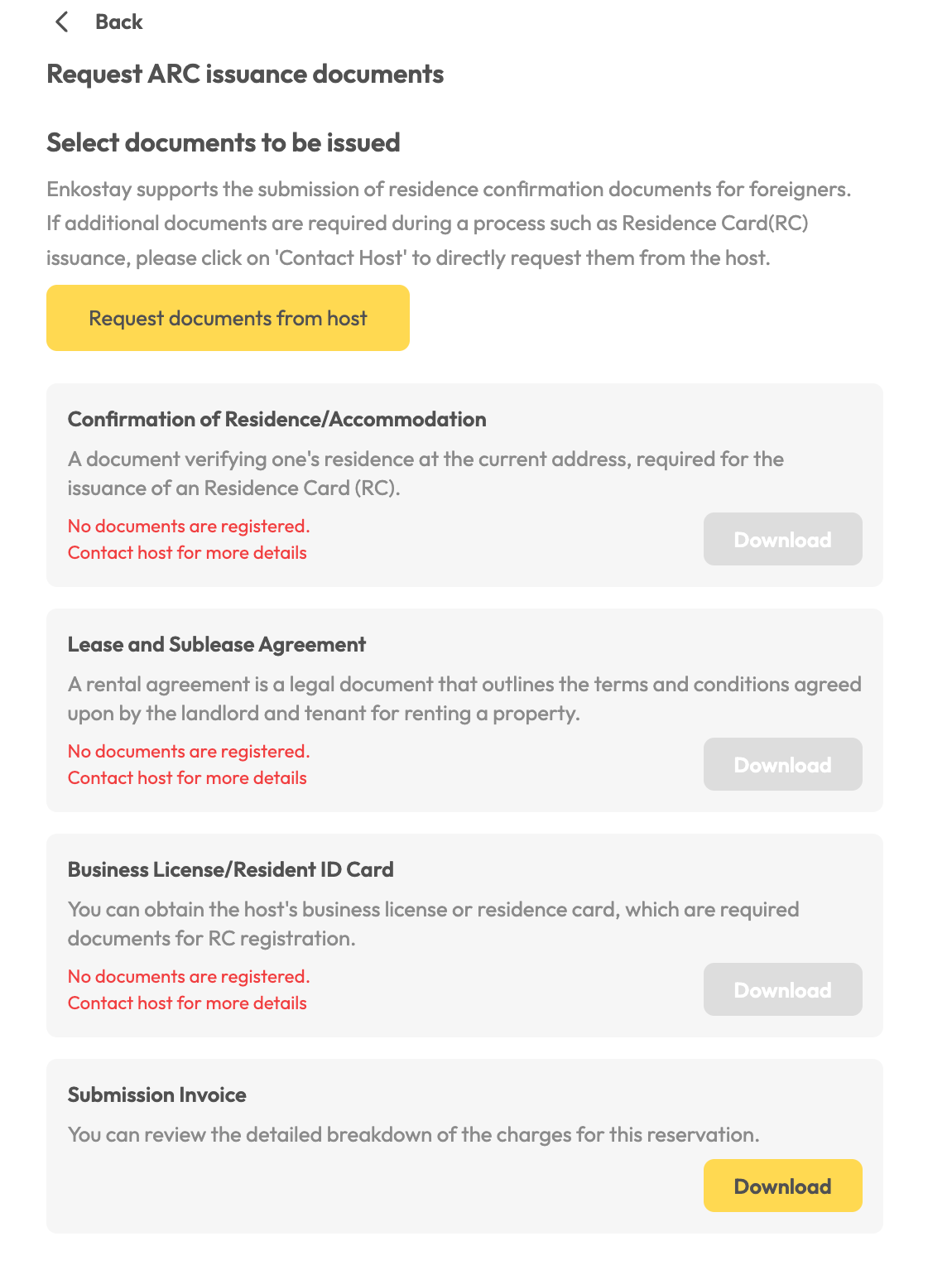 If the required information or documents have not been provided by the host, you will not be able to download any documents.