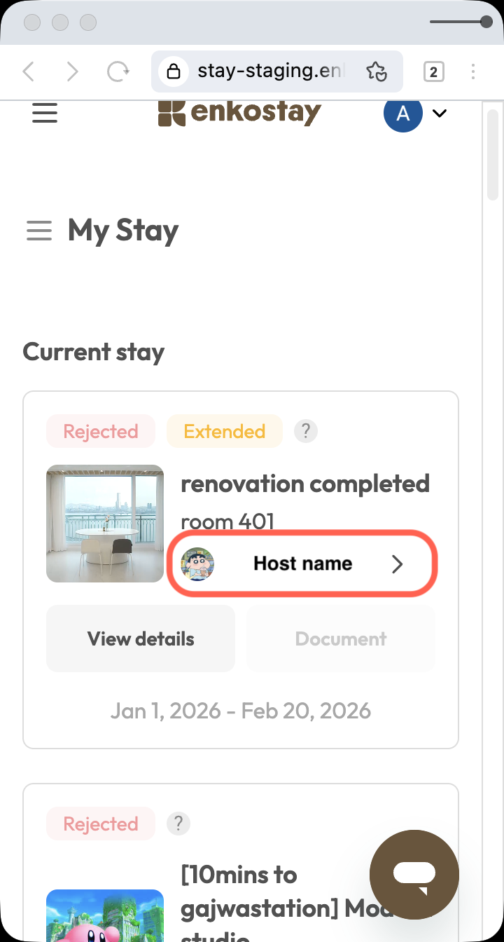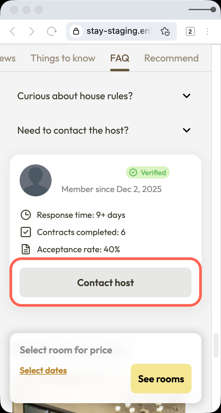 - Before leasing: Click the "Contact Host" button at the bottom of the property detail page.