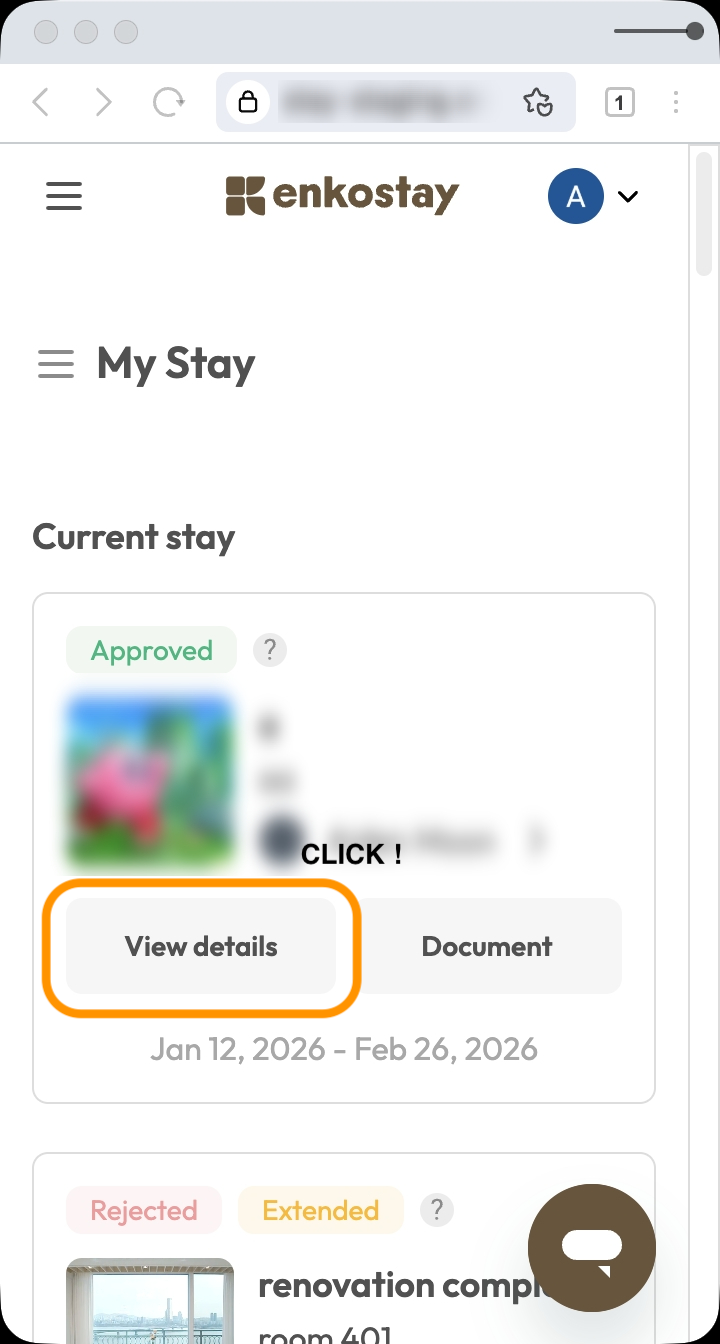 [My Booking] → Select your [Stay] → [Detail] → Click the [Cancellation] button at the bottom.